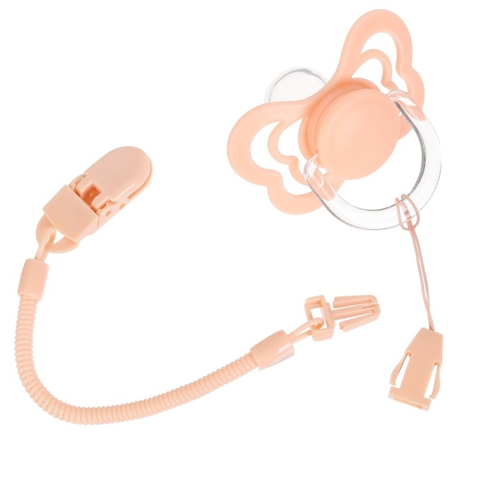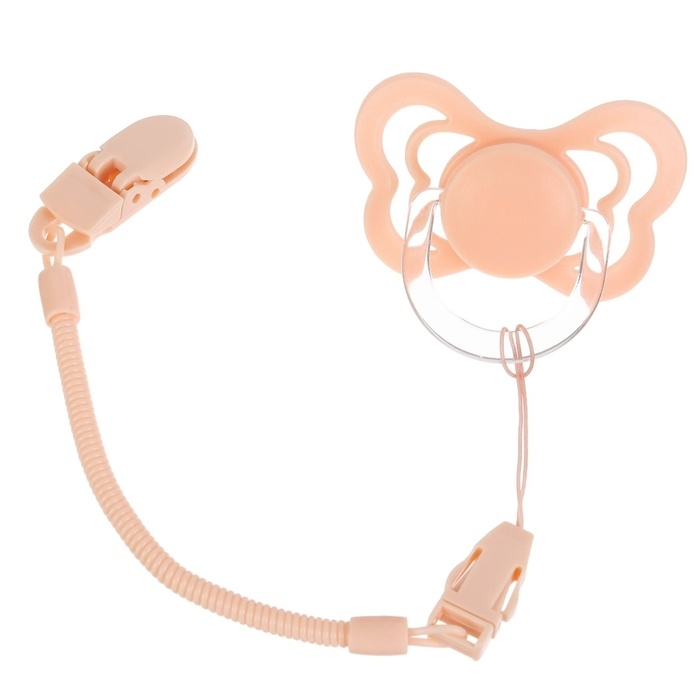Соска - пустышка ортодонтическая, силикон, +6 мес., с держателем, цвет розовый