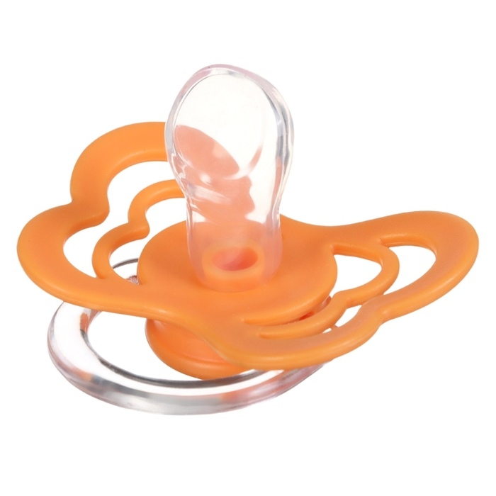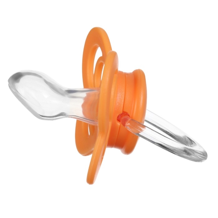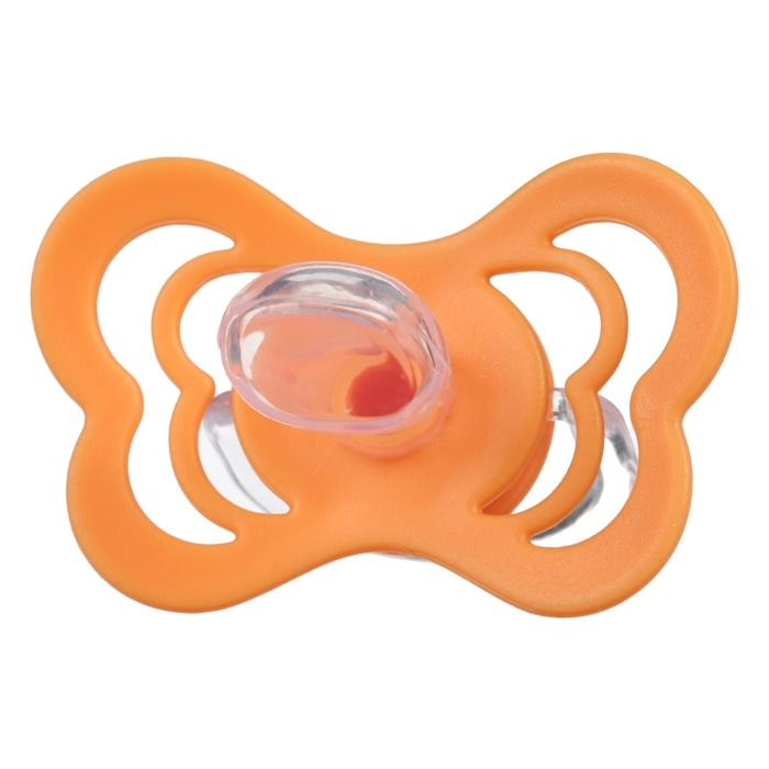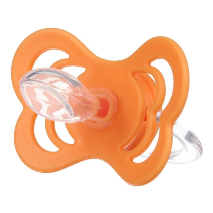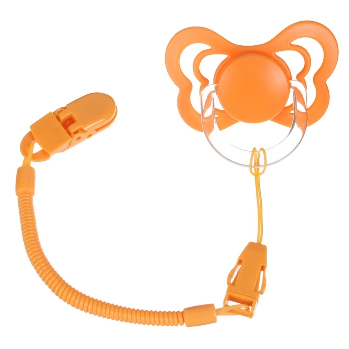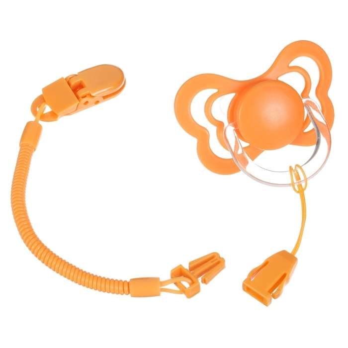 Соска - пустышка ортодонтическая, силикон, +6 мес., с держателем цвет оранжевый