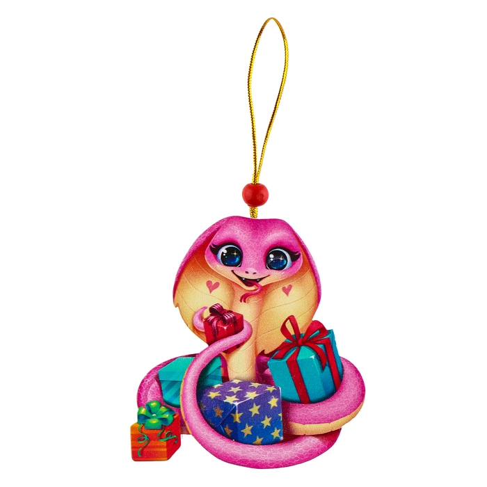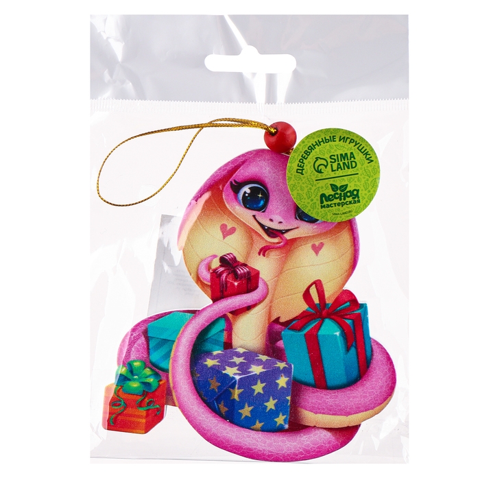 Ёлочная игрушка - подвеска деревянная «Новый год! Змея с подарками», символ года 2025