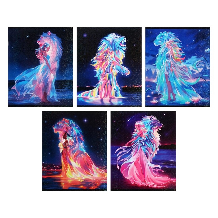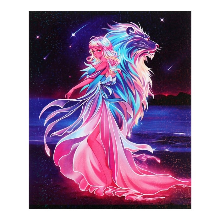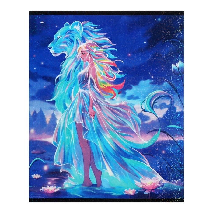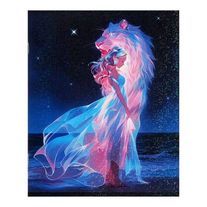 Тетрадь 48 листов в клетку Calligrata TOP "Девушка и лев", обложка мелованный картон, голография, блок офсет, белизна 95%, МИКС