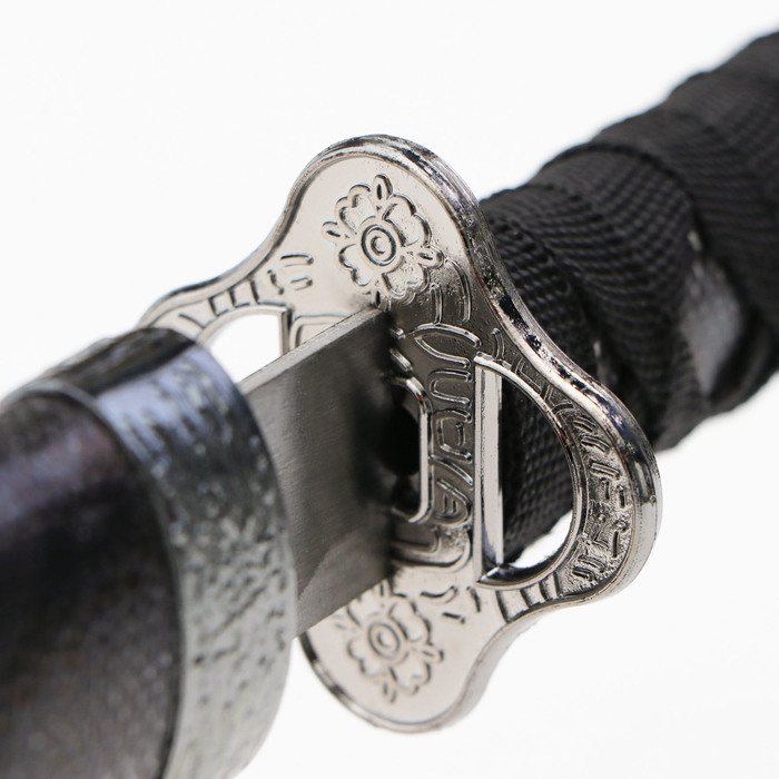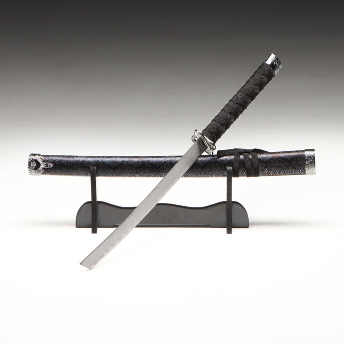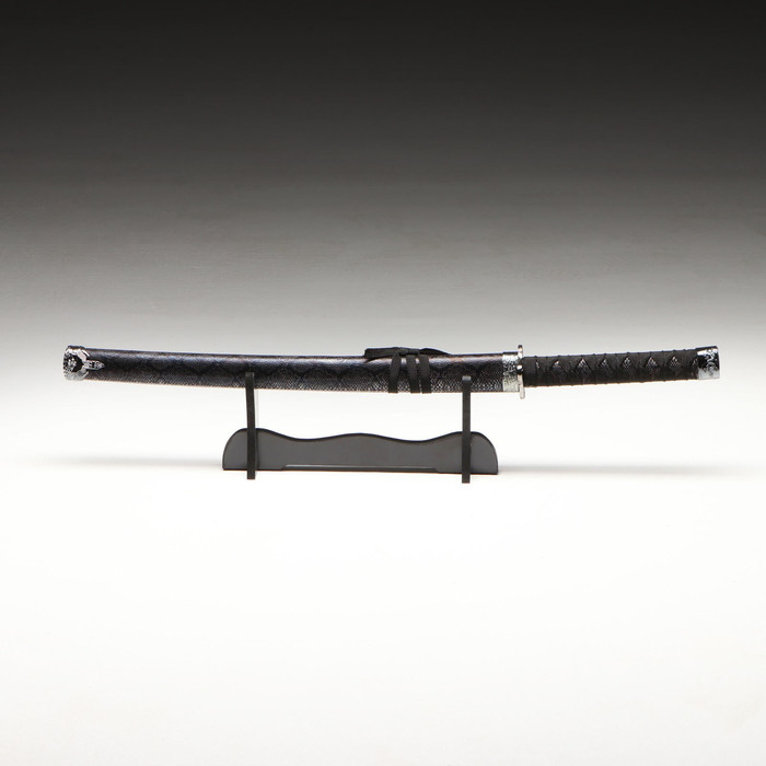 Сувенирное оружие «Катана на подставке», чёрные ножны под змеиную кожу, 70см, клинок 31см