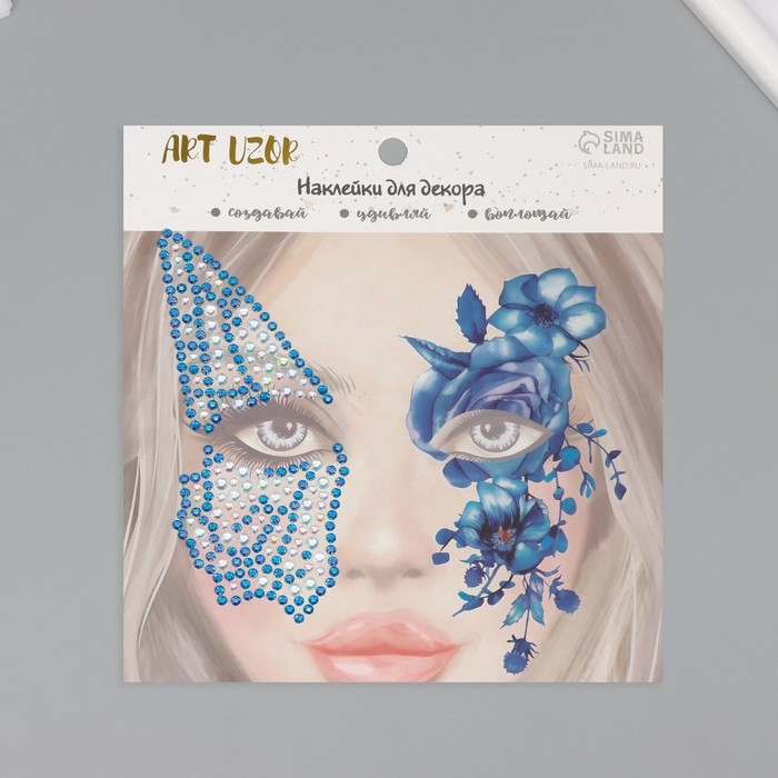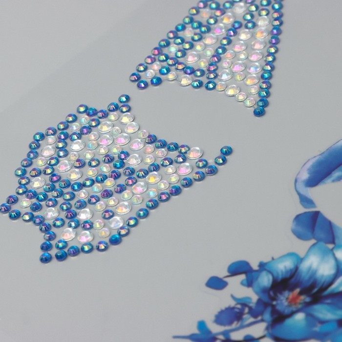 Наклейка пластик стразы "Крыло бабочки и цветы" 16х17 см