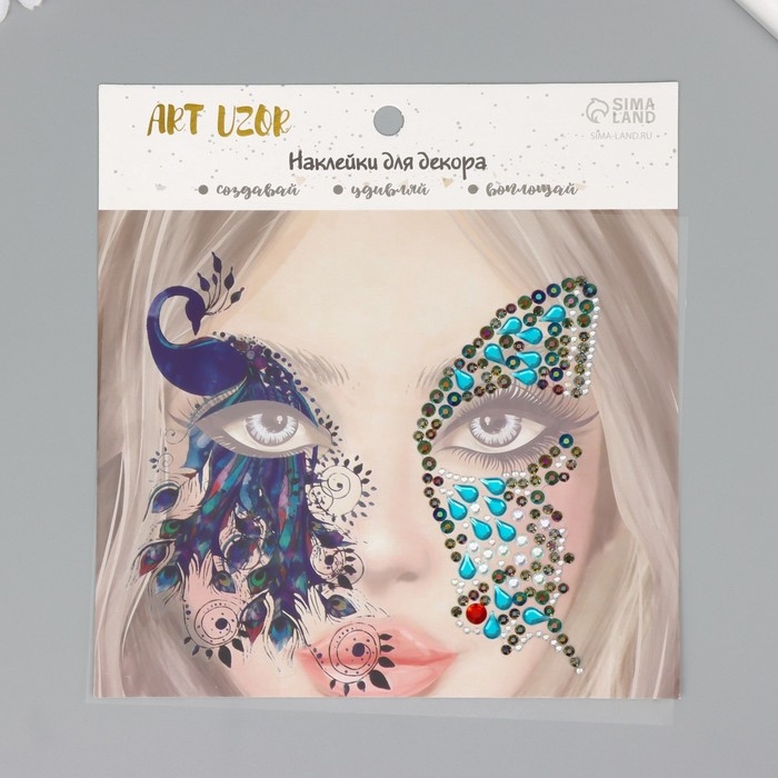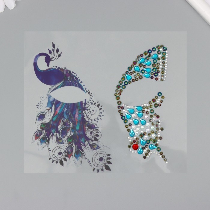 Наклейка пластик стразы "Крыло бабочки и павлин" 16х17 см