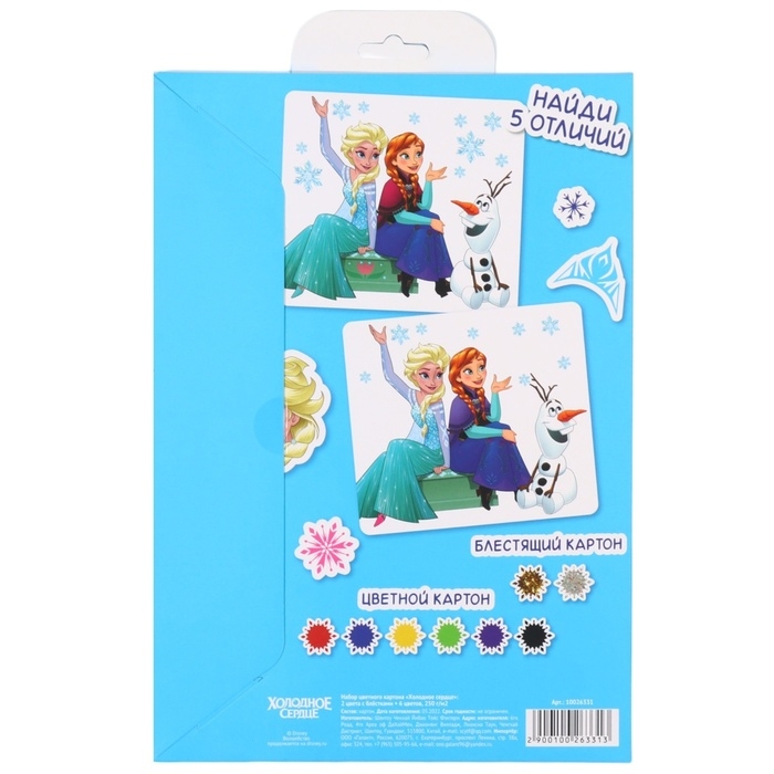 Картон цветной с блёстками, А4, 8 листов, 8 цветов, немелованный, двусторонний, в папке, 250 г/м², Холодное сердце
