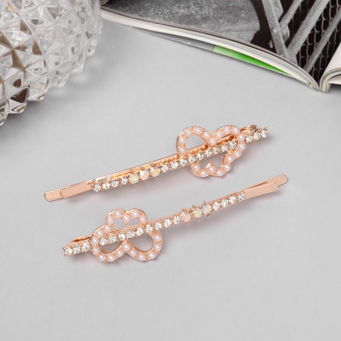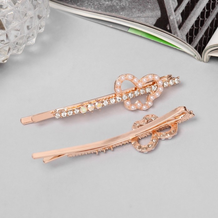 Невидимка для волос "Глория" (набор 2 шт) бабочка, 6 см, розовое золото