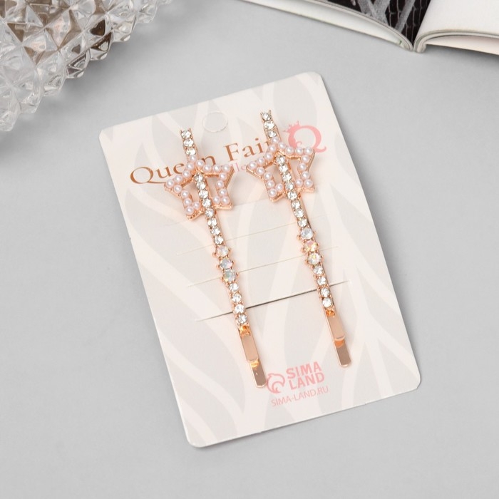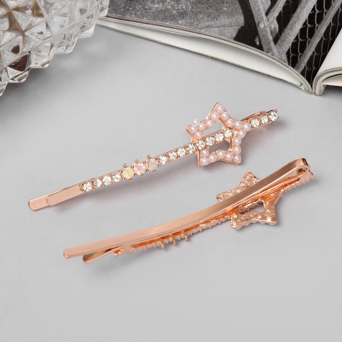 Невидимка для волос "Глория" (набор 2 шт) звезда, 6 см, розовое золото