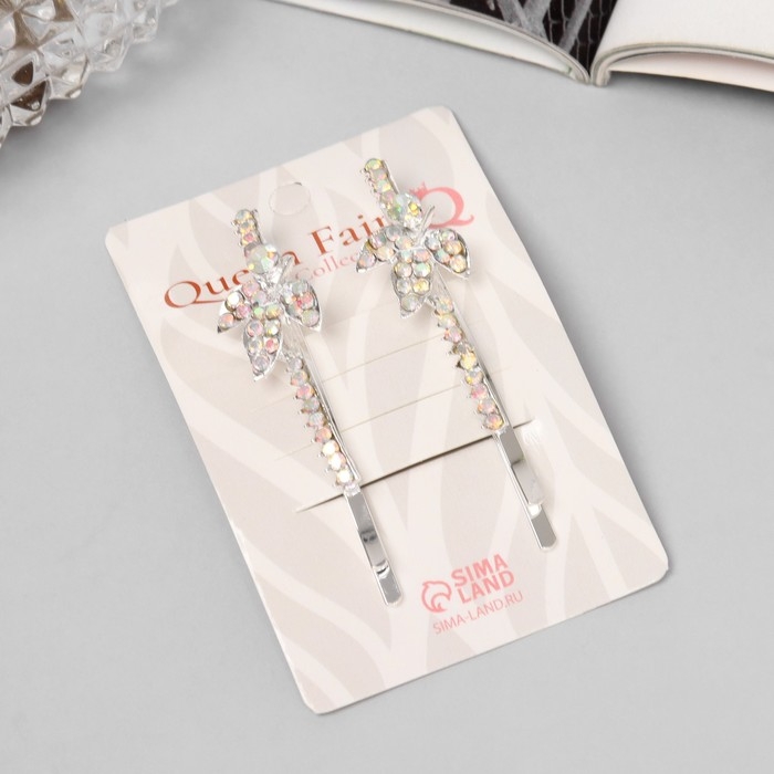 Невидимка для волос "Флоранс" (набор 2 шт) листочки, 6 см, серебро
