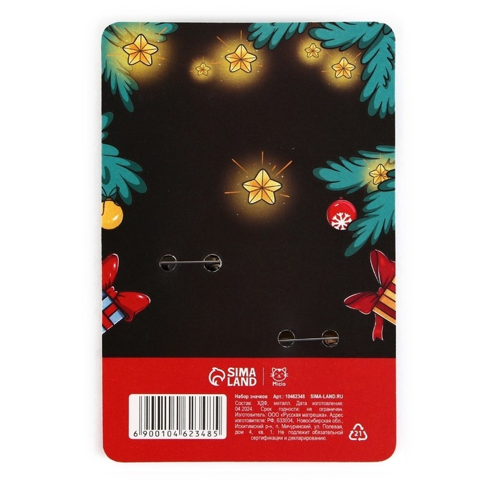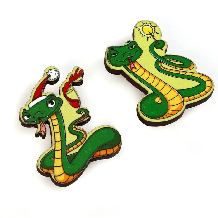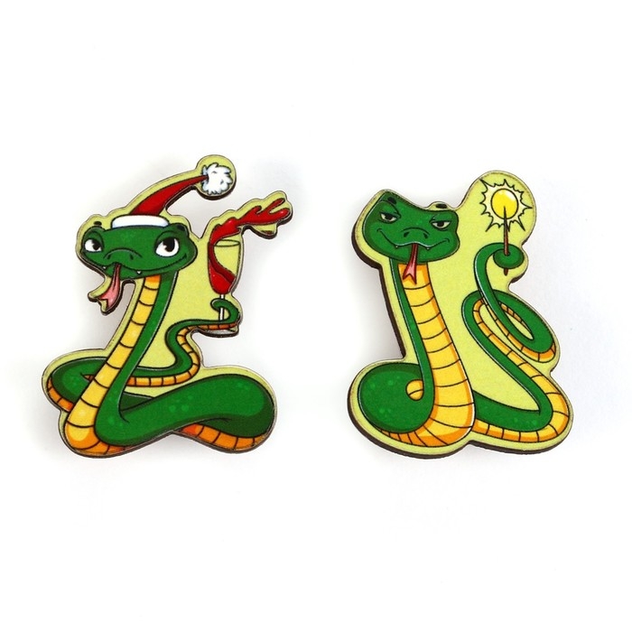 Значки новогодние «Новый год: две змейки», набор, 2 шт