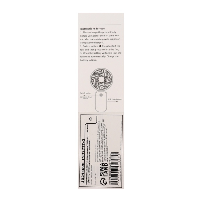 Портативный вентилятор YM88151, 250 мАч, 1 режим, кабель для зарядки, зелёный
