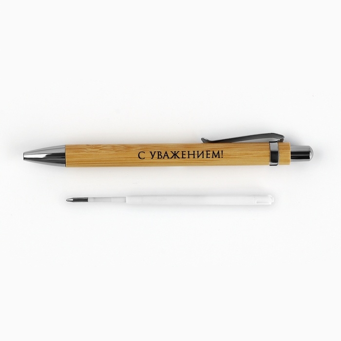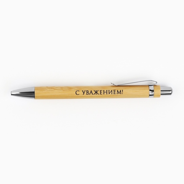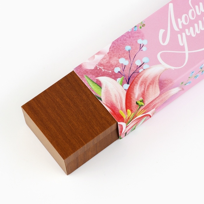 Ручка шариковая синяя паста, бамбуковая в деревянном футляре «Любимому учителю»