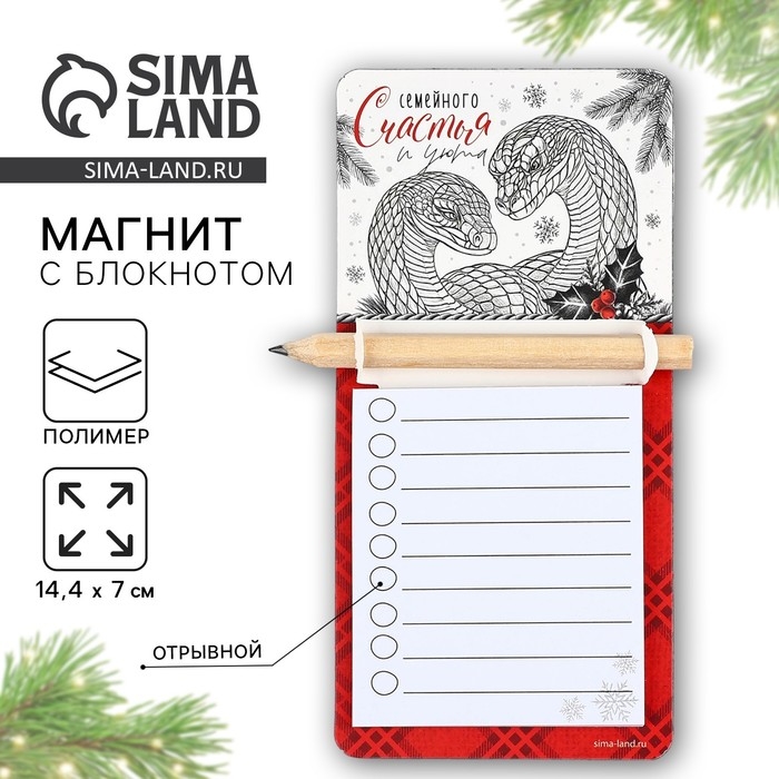 Магнит новогодний с блоком для записи и карандашом «Новый год: Семейного счастья», 7 х 14,4 см