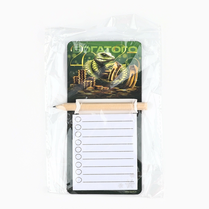 Магнит новогодний с блоком для записи и карандашом «Новый год: Богатого года», 7 х 14,4 см