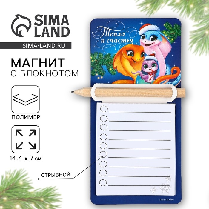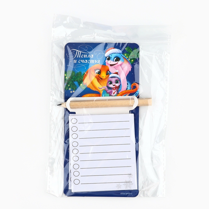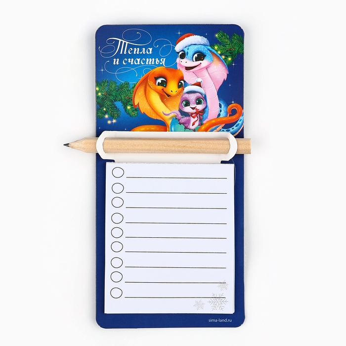 Магнит новогодний с блоком для записи и карандашом «Новый год: Тепла и счастья», 7 х 14,4 см