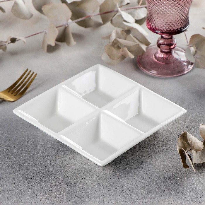 Менажница фарфоровая 4 ячейки Wilmax, 15×15 см, цвет белый