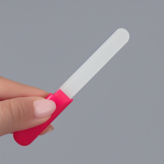 Пилка стеклянная для ногтей, 12,8 см, в пластиковом футляре, цвет розовый