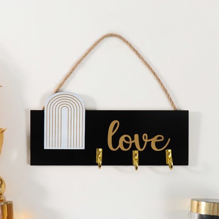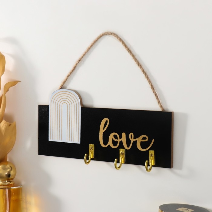 Крючки декоративные дерево "Любовь. Абстракция. Радуга" чёрная с золотом 20х9,3 см