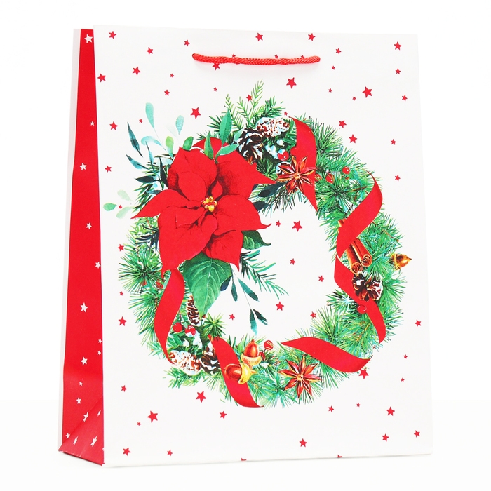 Новый год. Пакет подарочный "Венок", 26 х 32 х 12 см.