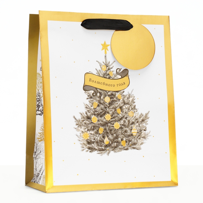 - Этот удивительный подарочный пакет станет идеальным дополнением к вашему новогоднему подарку, придавая ему шикарный и праздничный вид.