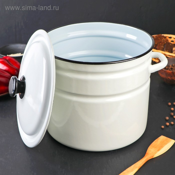 Кастрюля эмалированная цилиндрическая, 10 л, без деколи, цвет белый