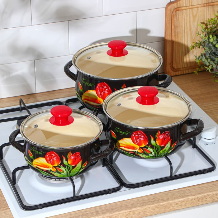 Набор эмалированных кастрюль «Грациозный», 3 предмета: 1,5 л, 2 л, 3 л, индукция