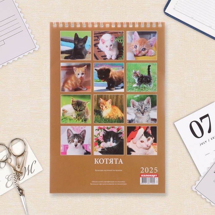 Календарь на пружине без ригеля "Котята" 2025 год, 17 х 25 см
