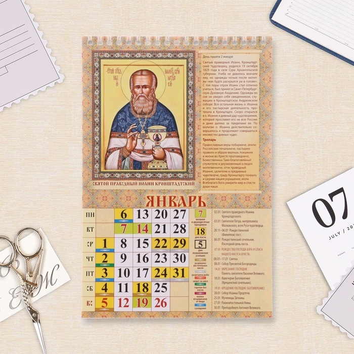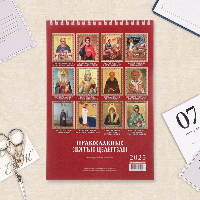 Календарь на пружине без ригеля "Православные святые целители" 2025 год, 17 х 25 см
