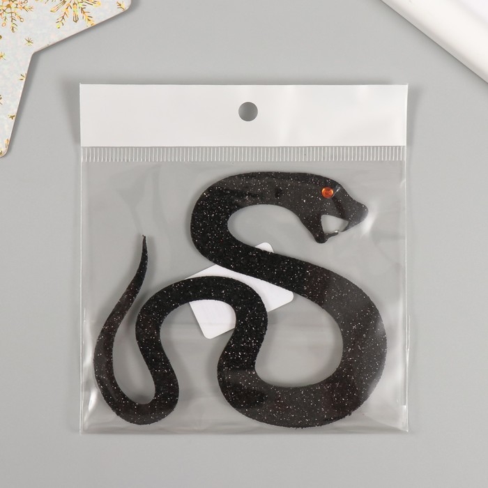 Новогодний декор на клеевой основе "Змейка" фоам глиттер 8х9 см чёрная