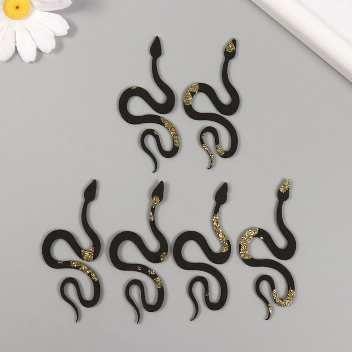 Новогодний декор "Чёрная-Золотая змея" фоамиран, 7 см (Новогодний набор 6 шт)