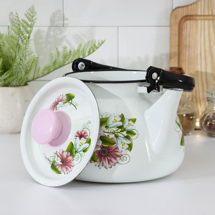 Чайник сферический, 3 л, индукция, деколь МИКС, цвет белый