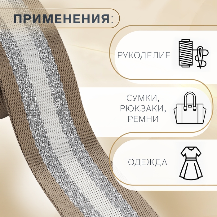 Стропа ременная «Полосы», 38 мм, 3 ± 0,1 м, цвет бежево-белый