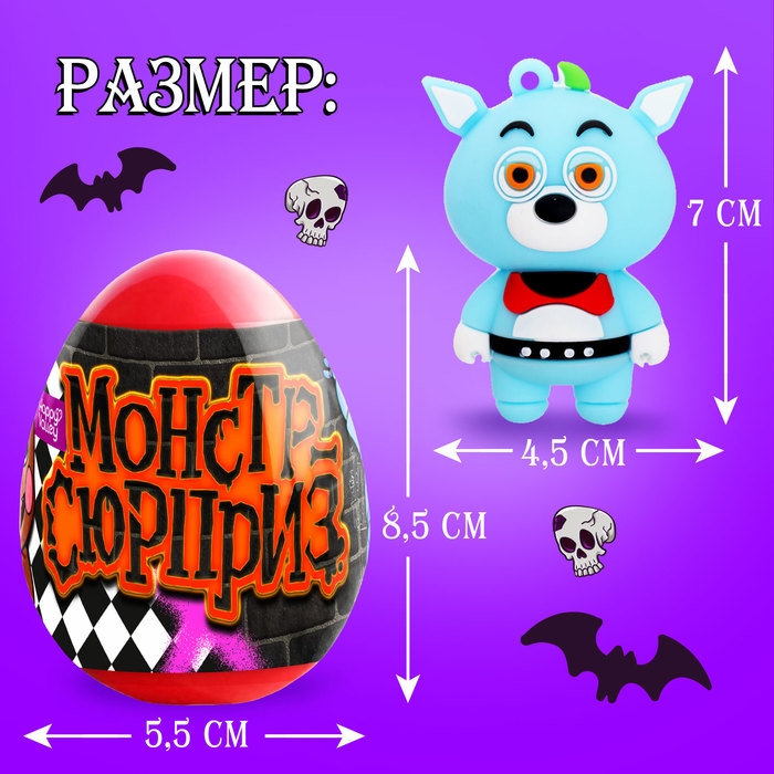 В пластиковом яйце «Монстр-сюрприз» вам попадётся фигурка в виде персонажа из популярной детской игры и наклейки! Яйцо с сюрпризом — это хороший способ порадовать своего ребёнка без повода, ведь все дети любят сюрпризы!