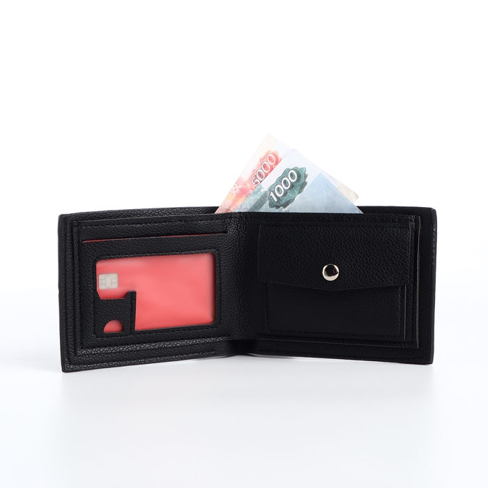Портмоне мужское без застёжки, отдел для карт, монет, цвет чёрный