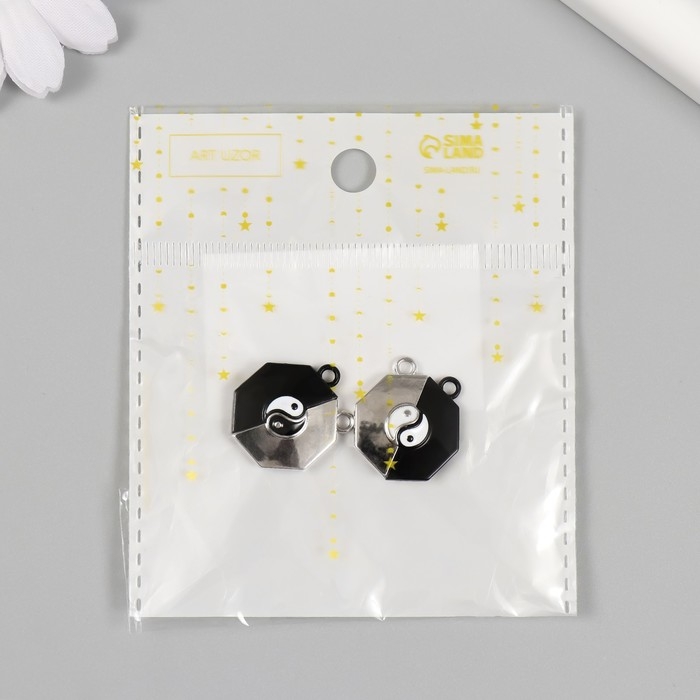Замок магнитный металл "Инь-ян" чёрный и серебристый 2х2,2х0,5 см (набор 2 половинки)