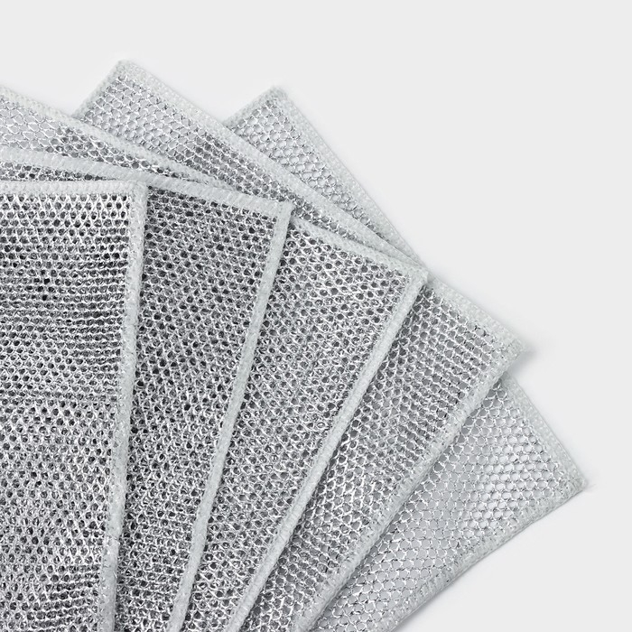 Салфетка для мытья посуды, металлическая, однослойная, 5 шт, 19×19 см