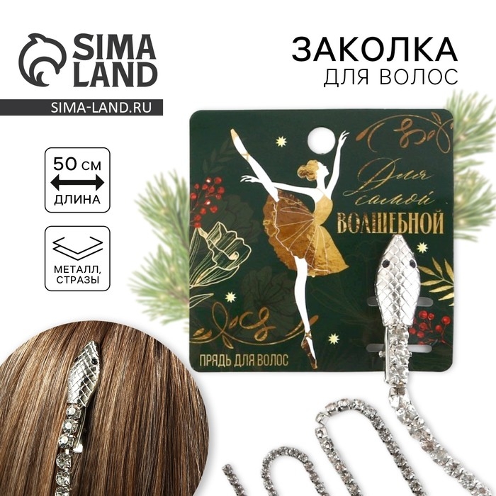 Заколка прядь со стразами новогодняя «Для самой волшебной», на Новый год, 1,5 х 1,5 х 2 х 45 см