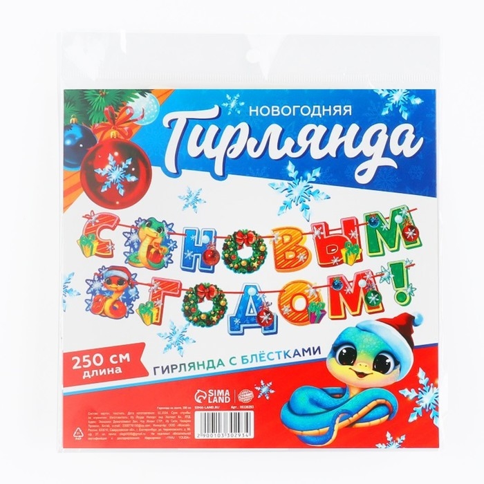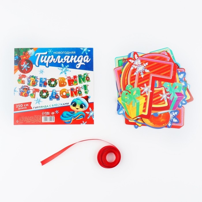 Гирлянда на ленте с блестками новогодняя «С Новым годом!», на Новый год, длина 250 см