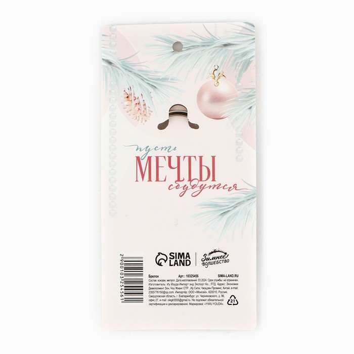 Брелок новогодний, для ключей «Чудесного нового года» кожзам., 5 х 8,5 см