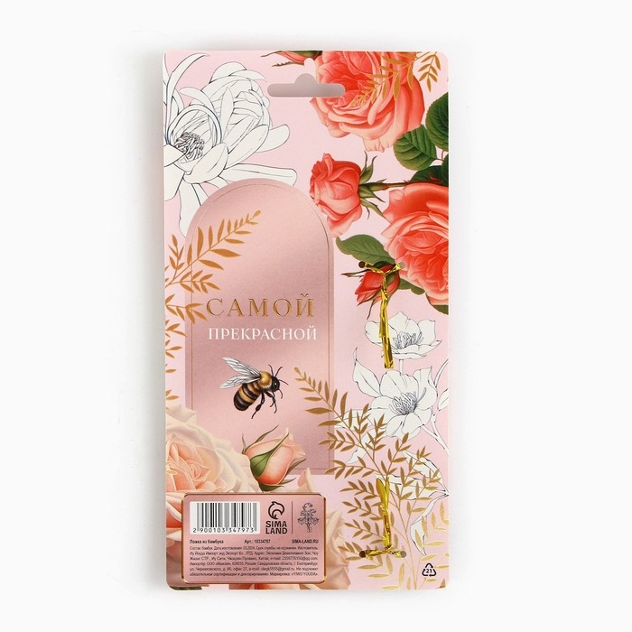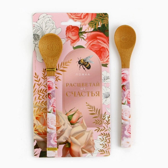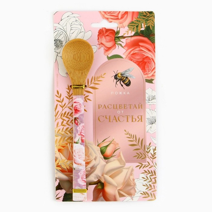 Ложка бамбуковая «Расцветай от счастья», 3 х 16 см.