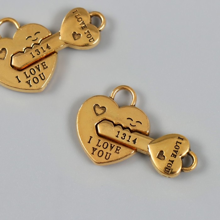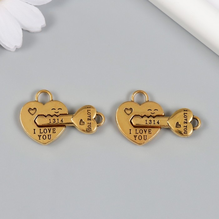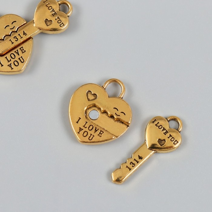 Замок магнитный металл "Ключик и замочек" золотой 2,3х3,4х0,5 см (набор 2 половинки)