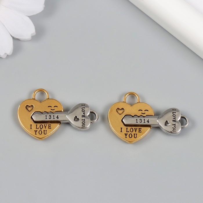 Замок магнитный металл "Ключик и замочек" золото, серебро 2,3х3,4х0,5 см (н-р 2 половинки)