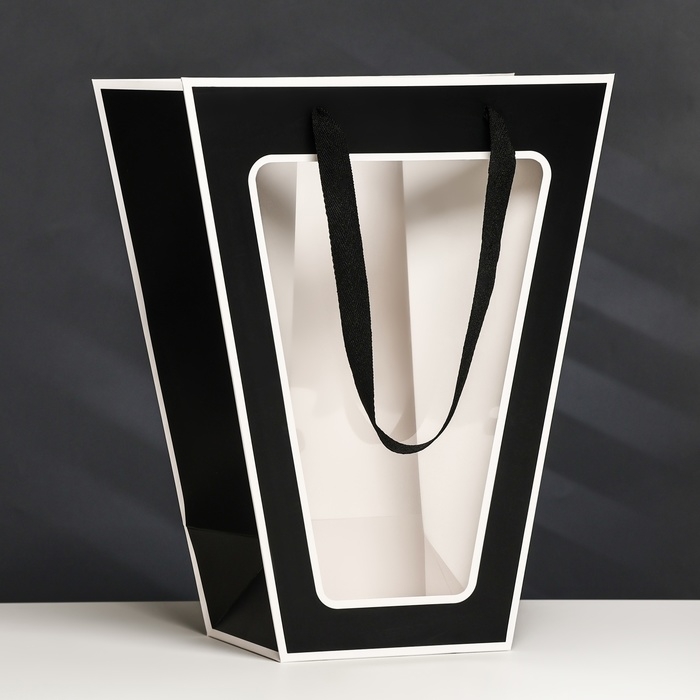 Пакет-переноска для цветов 18 × 14 × 35 х 28 см, черный с каймой