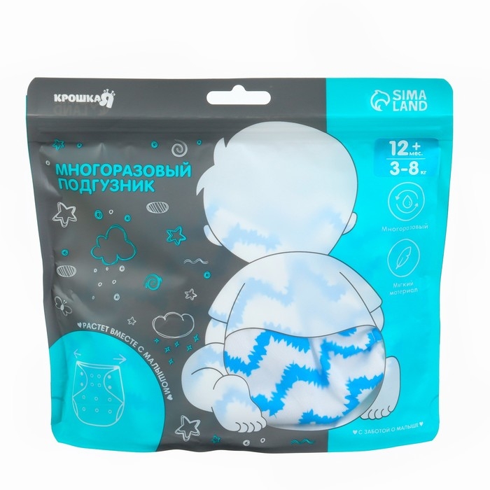 Многоразовый подгузник «Зигзаги», 3-15 кг, цвет голубой, Крошка Я