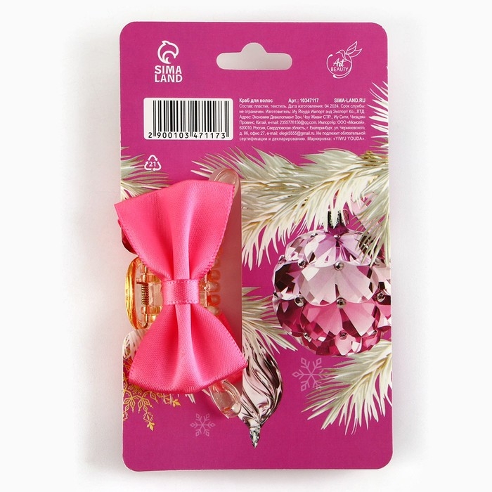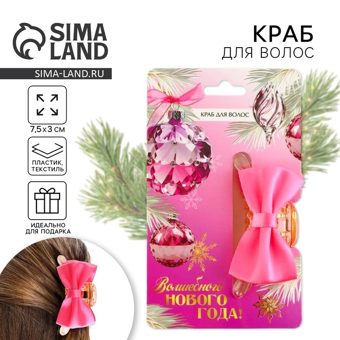 Краб для волос с текстильным декором новогодний «Волшебного года», на Новый год, 6 х 38 х 32 см
