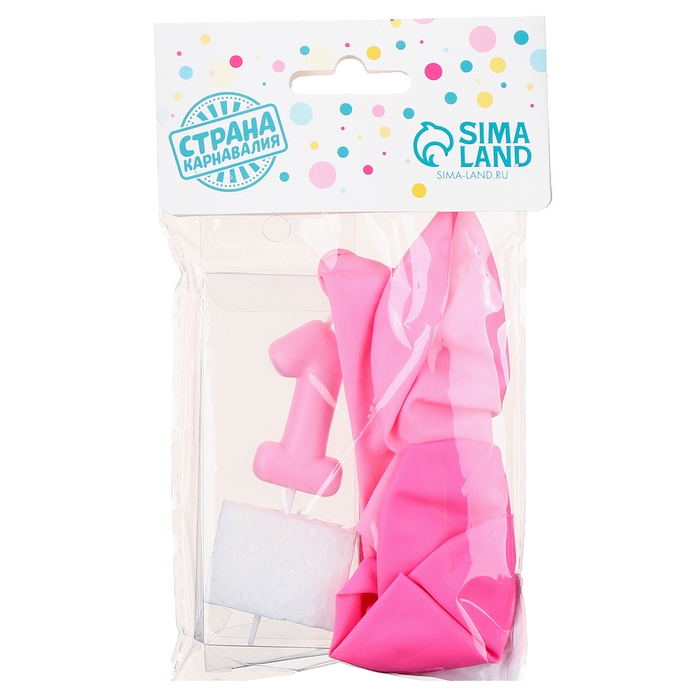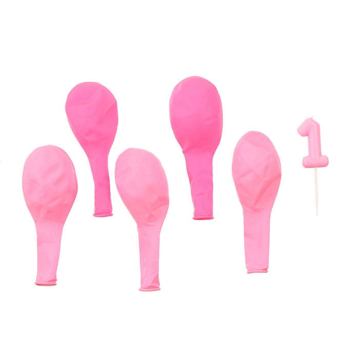 Свечи для торта + 5 шаров, цифра 1, розовая