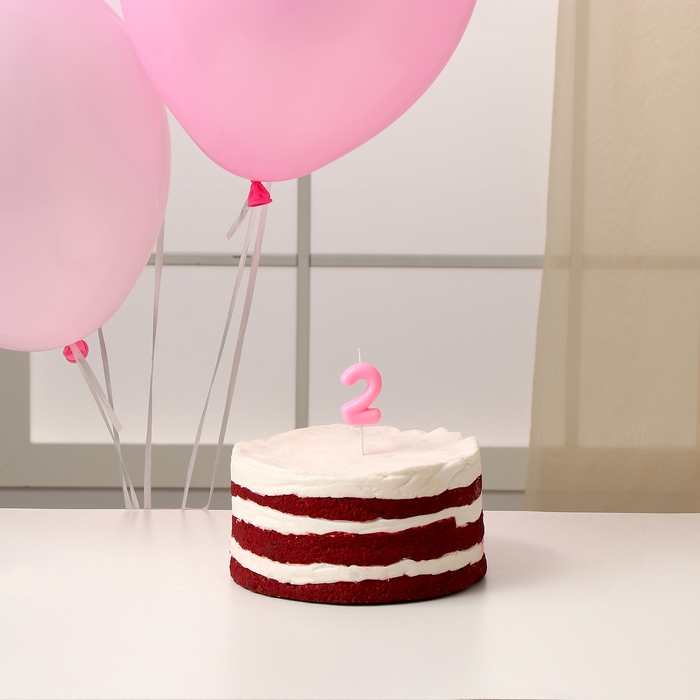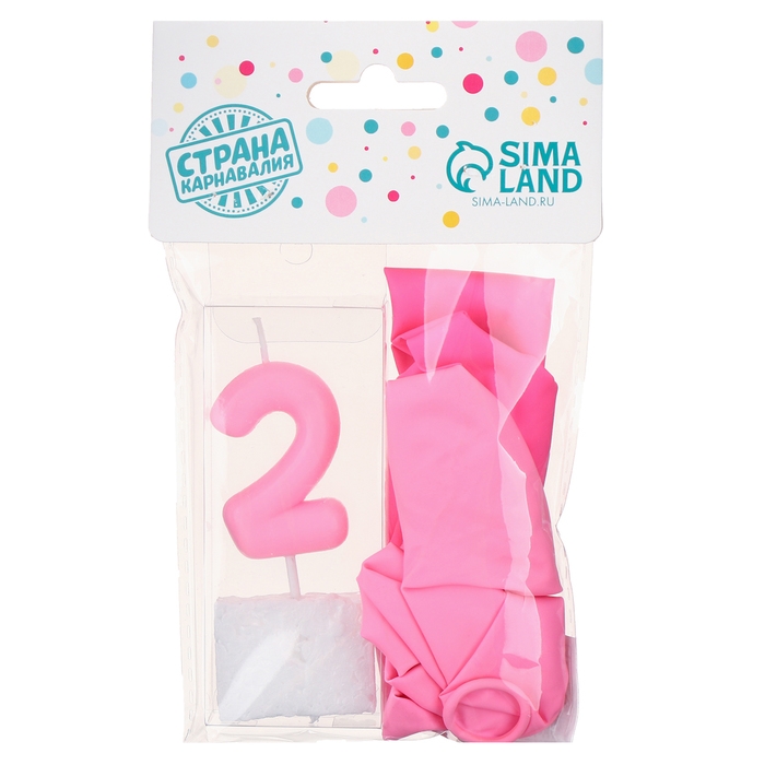 Свечи для торта + 5 шаров, цифра 2, розовая