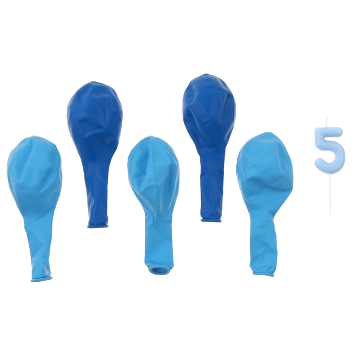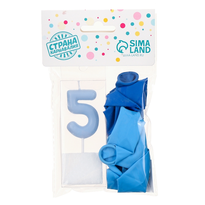 Свечи для торта + 5 шаров, цифра 5, голубая