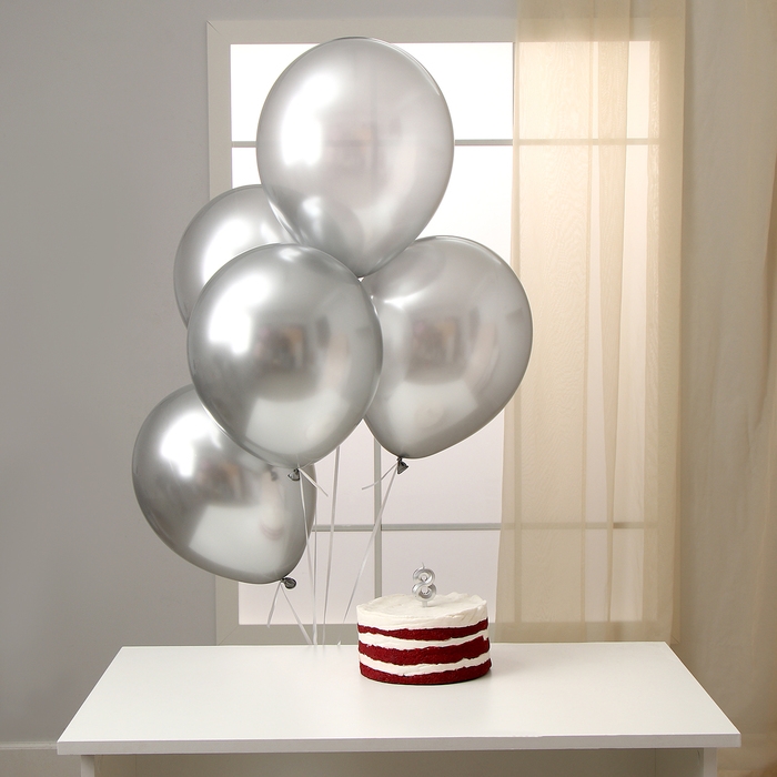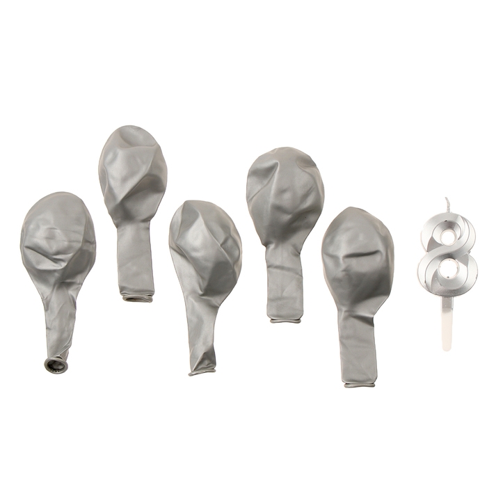 Свечи для торта + 5 шаров, цифра 8, серебро