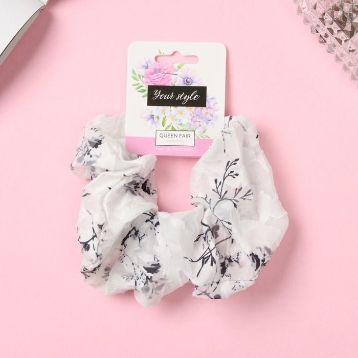 Резинка для волос "Орбита" весенний стиль, 13 см, чёрно-белый