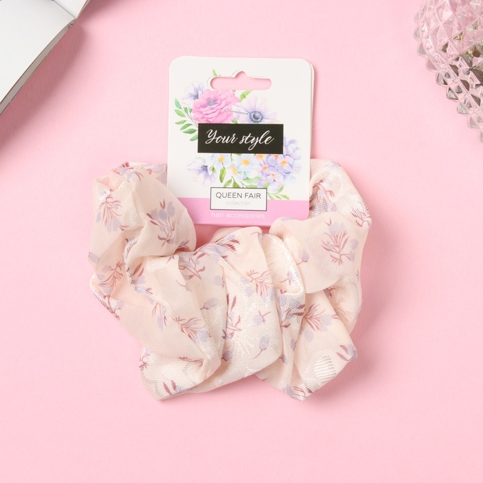 Резинка для волос "Орбита" цветочный стиль, 13 см, светло-розовый
