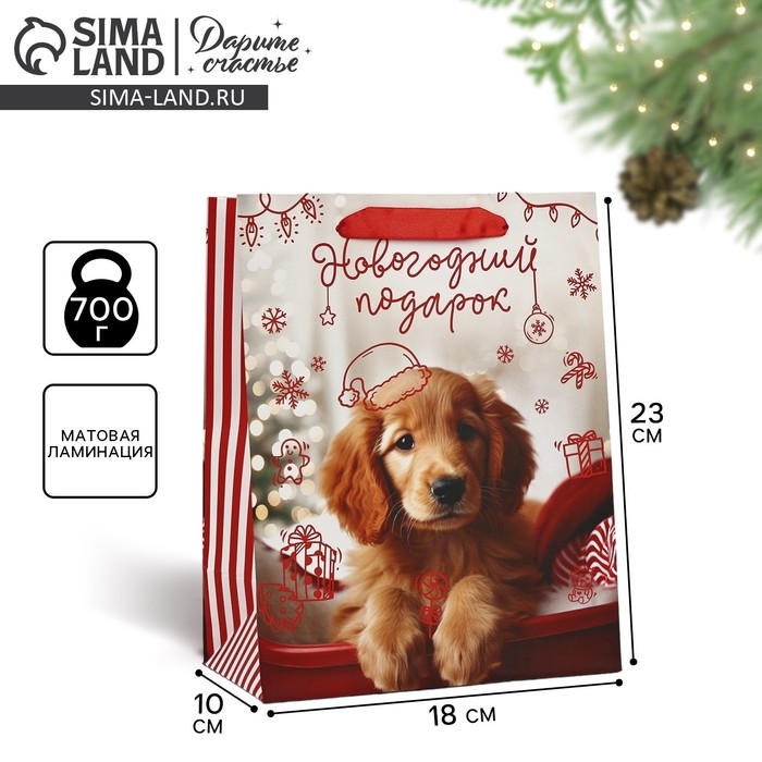 Пакет подарочный новогодний ламинированный «Новогодний подарок», MS 18 х 23 х 10 см , Новый год